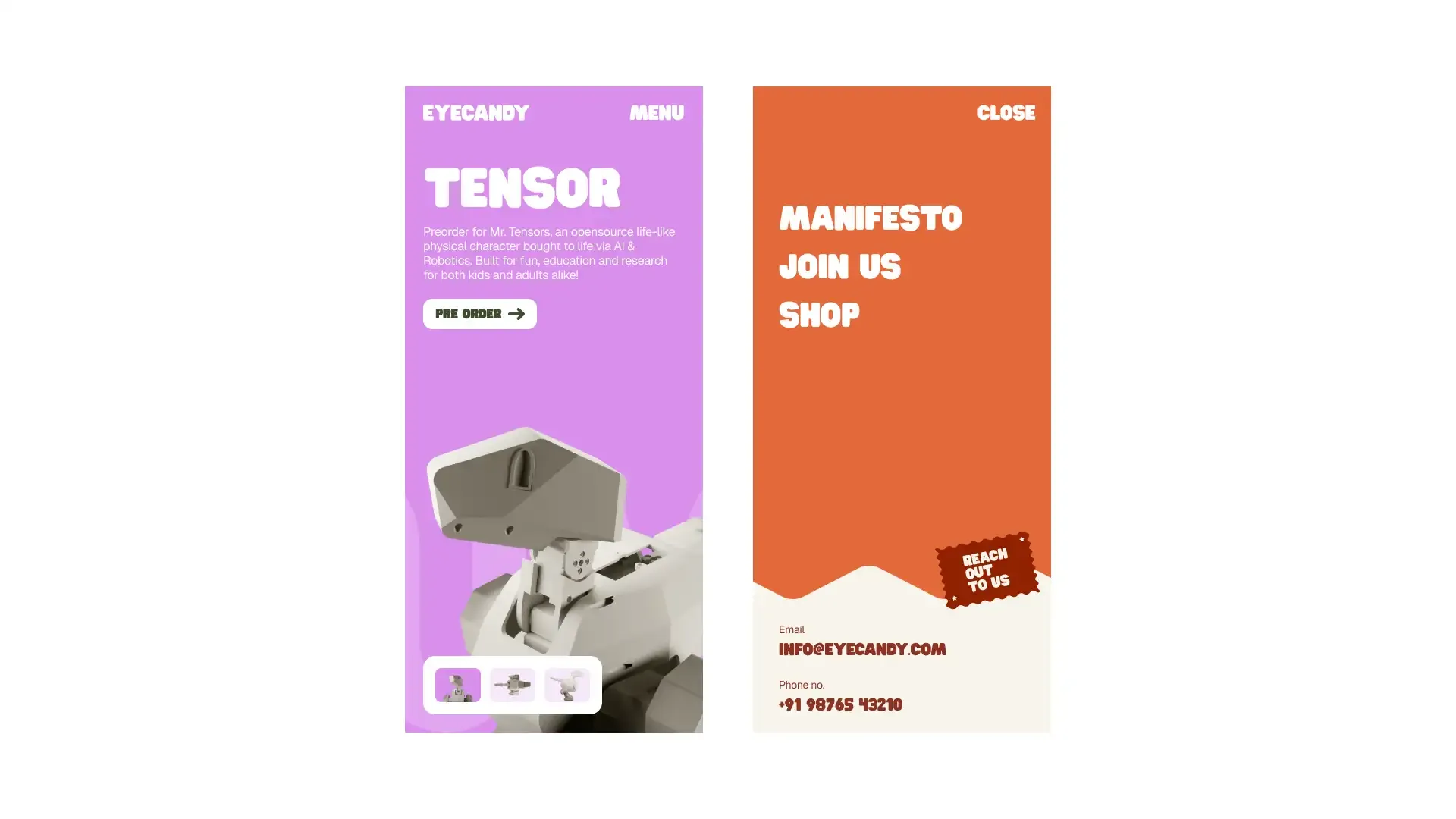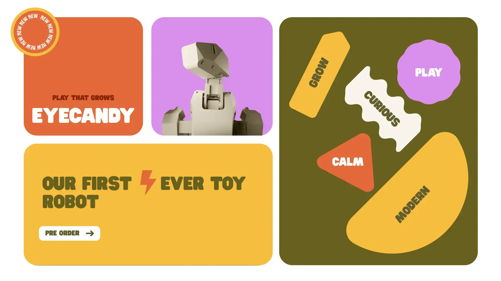 A brand and website for eyecandy, a companion robot for children, that feels playful and accessible.